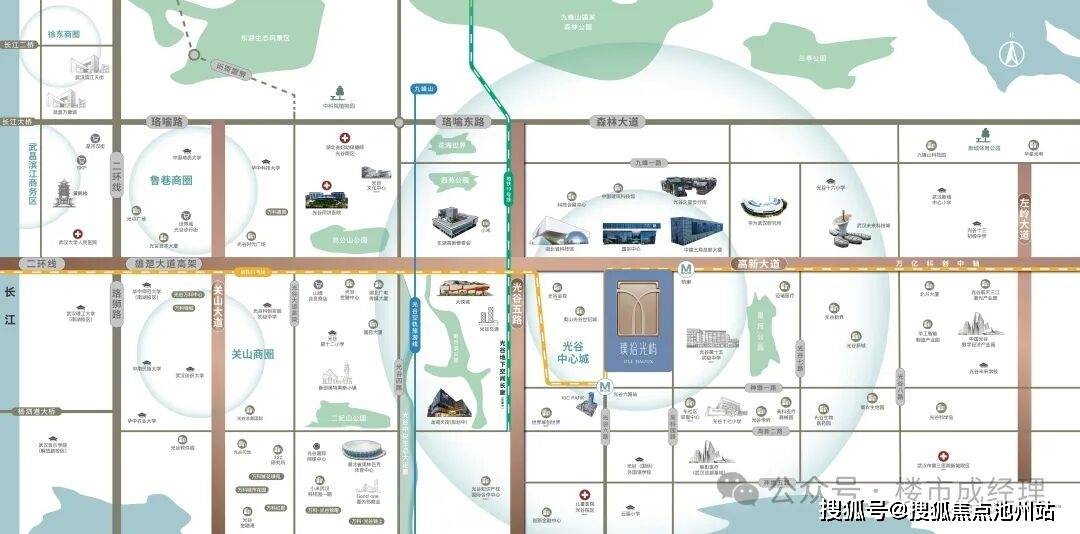 项目位于光谷高新中轴,锚定“一横三纵”源心,串联城市发展脉络。周边商业、医疗、教育等全维优配环伺,聚合世界级鼎配资源,于万亿高新正轴之上,帷幄都会繁华,执掌高阶生活主场。